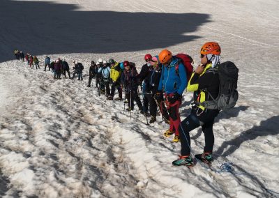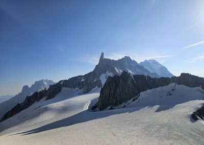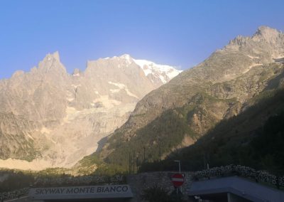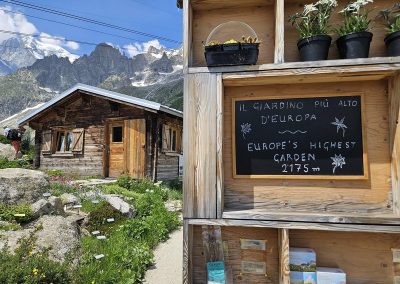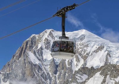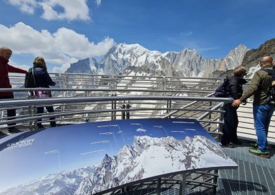 Dan po osvajanju vrha Breithorn, je bil dan za spektakularno popotovanje z žičnico Skyway Monte Bianco, ki se povzpne do vmesne postaje Pavillon Du Mont-Frety na nadmorski višini 2.173 metrov. Kabina za 80 oseb se zavrti okoli svoje osi v šestih minutah in omogoča 360-stopinjski pogled na veličastno pokrajino doline Aosta ter dolini Val Veny in Val Ferret. Na tej višini, se na 7.000 kvadratnih metrih, razprostira vrt Saussurea, najvišje ležeči alpski botanični vrt v Evropi z značilno alpsko floro. Odprejo pa se tudi čudoviti razgledi na najvišji vrh Evrope, Mont Blanc.
