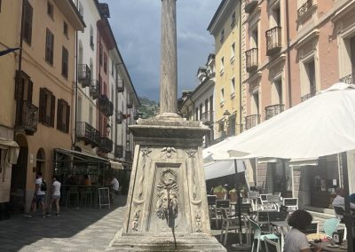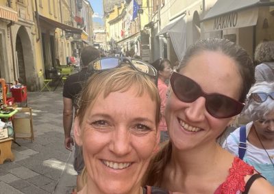 Čas nam dopušča, da si ogledamo slikovito mesto Aosta, ki je prava skrita dragocenost in ponuja obiskovalcem nepozabno mešanico zgodovine, kulture in naravnih lepot. Ko z Anjo raziskujeva slikovito mestece prepredeno z malimi ulicami, preberem, da je Aosta bila ustanovljena v rimskih časih kot Augusta Praetoria. Sprehodiva se po starodavnih rimskih ruševinah, kot so mestno obzidje, občudujeva amfiteater, katedralo Santa Maria Assunta, Calvinov križ (Croix de Ville), cerkev svete Uršule in njen romanski zvonik. Aosta je mesto, ki združuje preteklost in sedanjost, kulturo in naravo, tradicijo in sodobnost. Ne glede na to, ali ste ljubitelj zgodovine, kulture, narave ali pa preprosto iščete sprostitev v čudovitem okolju, vas bo Aosta zagotovo očarala.